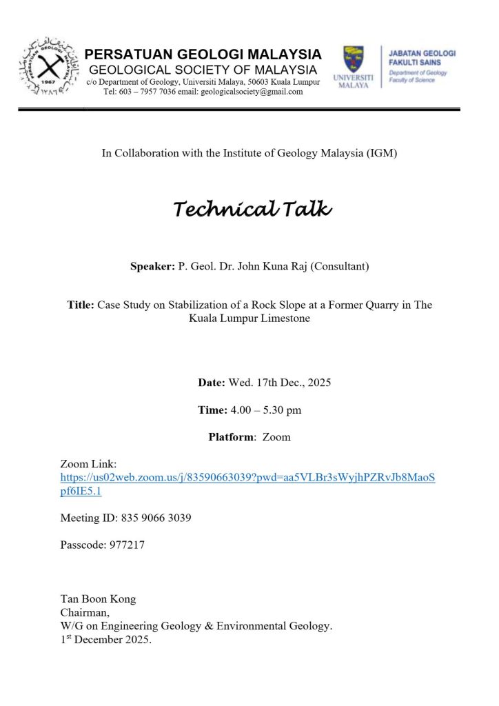 Title: Case Study on Stabilization of a Rock Slope at a Former Quarry in The Kuala Lumpur Limestone