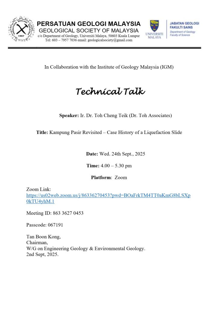 GSM Technical Talk 2025- Kampung Pasir Revisited – Case History of a Liquefaction Slide