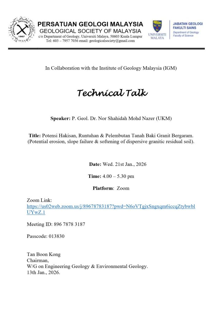 Speaker: P. Geol. Dr. Nor Shahidah Mohd Nazer (UKM)